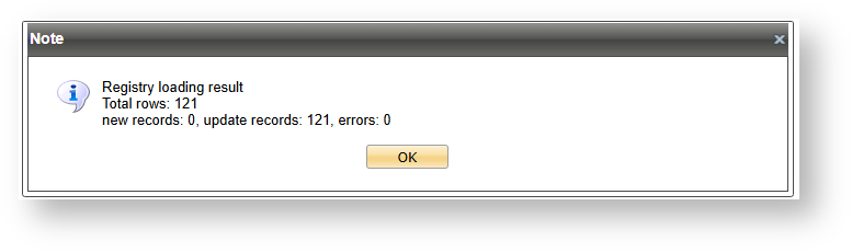 Successful registry loading result window