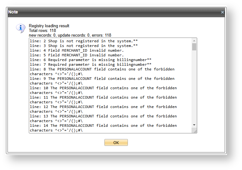 Unsuccessful registry loading result window