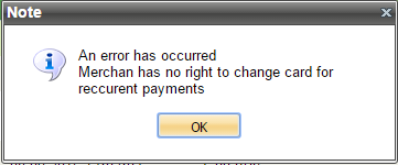If the duration of recurrent payment is expired at the moment of selecting the context menu item "Change card", i.e. card change for this payment has no meaning, then the following message appears: