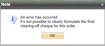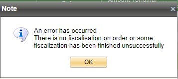 When the fiscalization of this order was not performed or some error appeared during the fiscalization, than a receipt for the goods transfer is not generated and the following error appears: