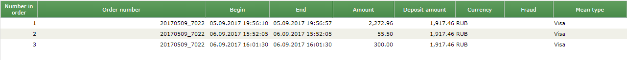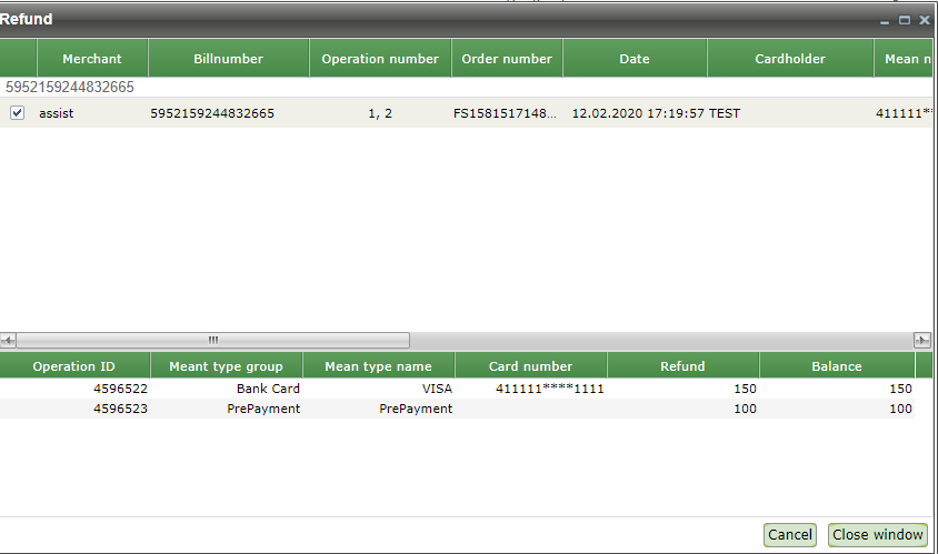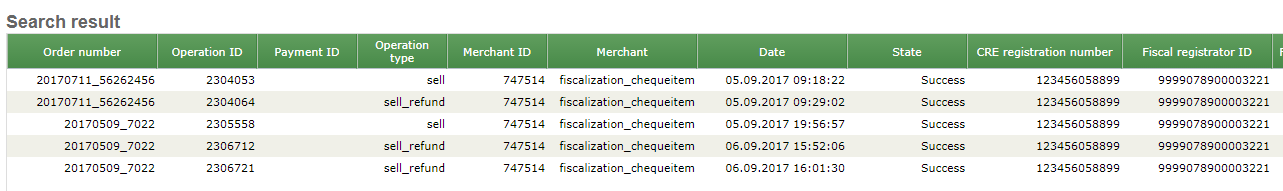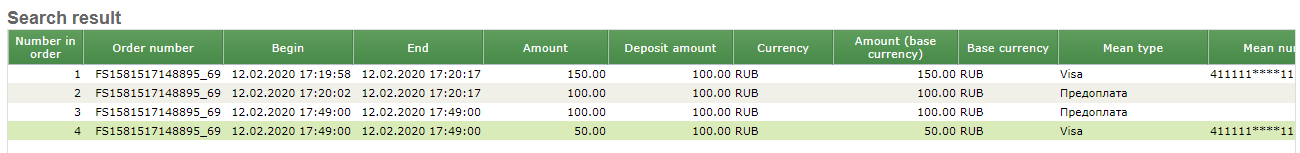 In the "Operations" tab, you can see all the operations for this order. In the example below, there are four operations - prepayment, partial cancellation of one position prepayment and the partial cancellation of payment on this position.