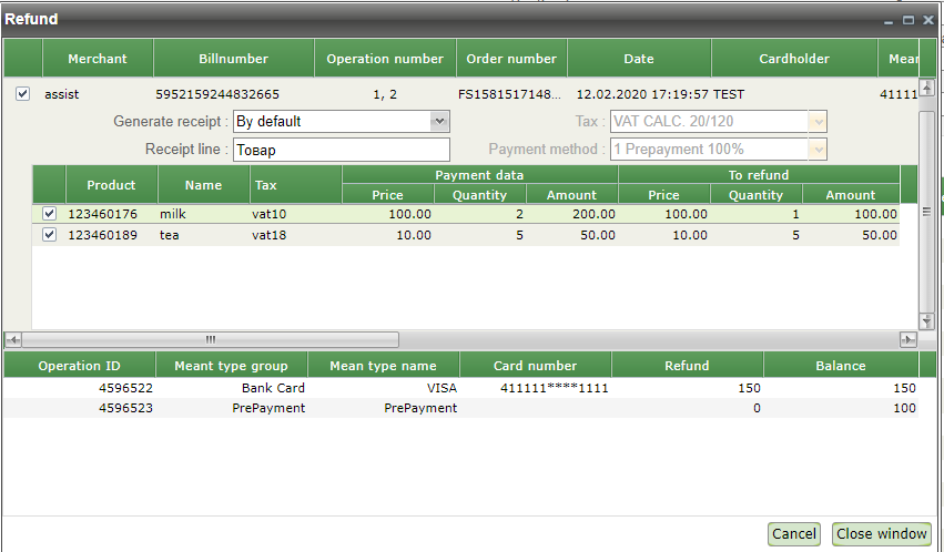 Cash refund is a procedure of full or partial funds return to customer over payment that was performed in the enterprise's Internet-shop using credit card. Refund operation can be performed after the financial transaction has been performed.