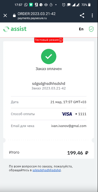 Для покупателя отображаются платежные страницы стандартного вида при проведении платежей через АПК Ассист с использованием перенаправления на сайт Assist или отображения в iFrame, встроенного в сайт магазина.