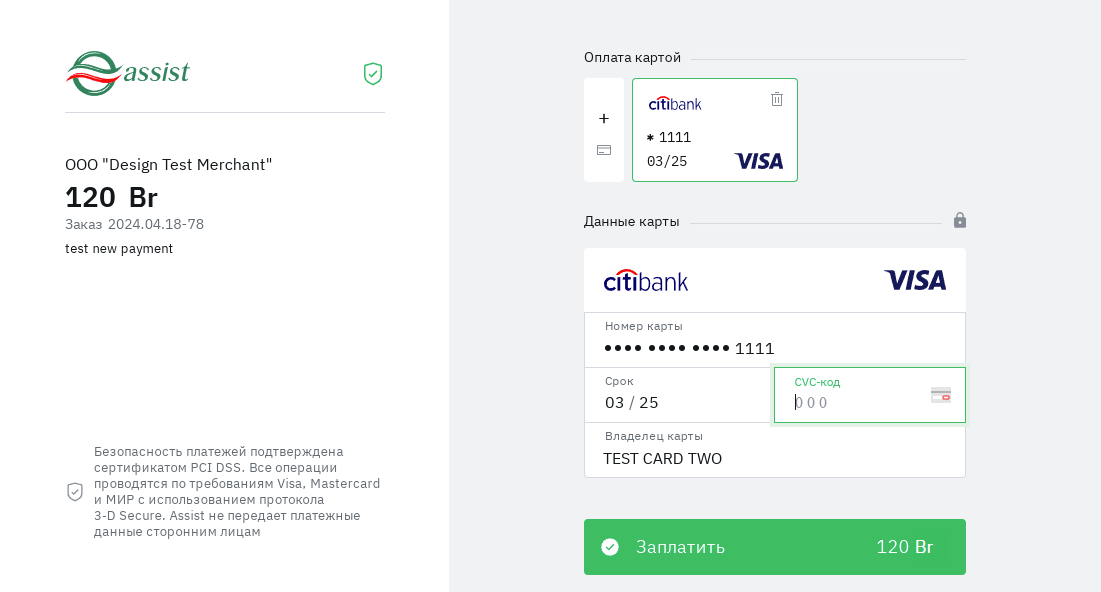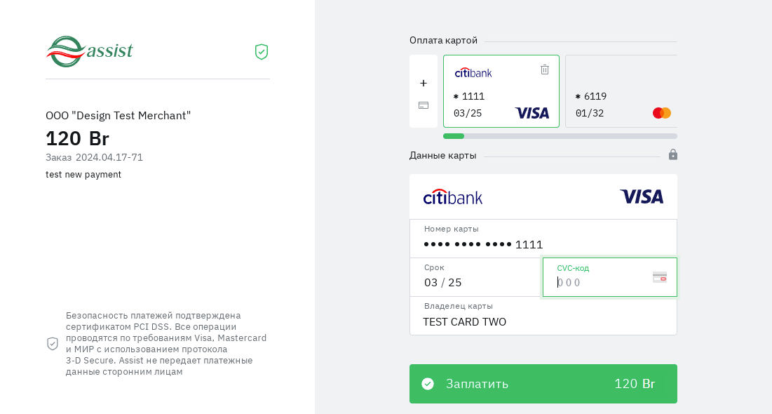 Если клиент соглашается использовать одну из сохраненных ранее карт для оплаты, то при совершении платежа ему предлагается ввести лишь ее код CVC2.
