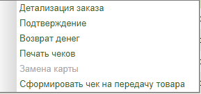 Контекстное меню позиций заказа