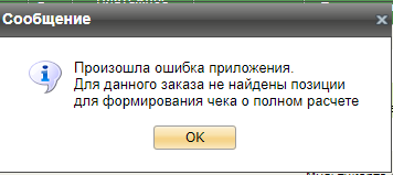 Если в данном заказе не было ни одной позиции с признаком "Предоплата 100%", то чек на передачу товара не формируется и выдается следующая ошибка: