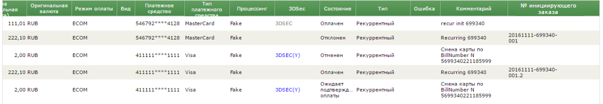 Номер карты | № платежного средства. Номер карты отображается в зашифрованном виде, например, 411111******1111. |