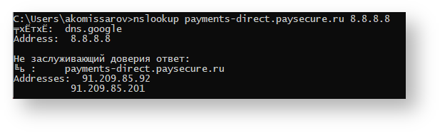 nslookup payments-direct.paysecure.ru 8.8.8.8