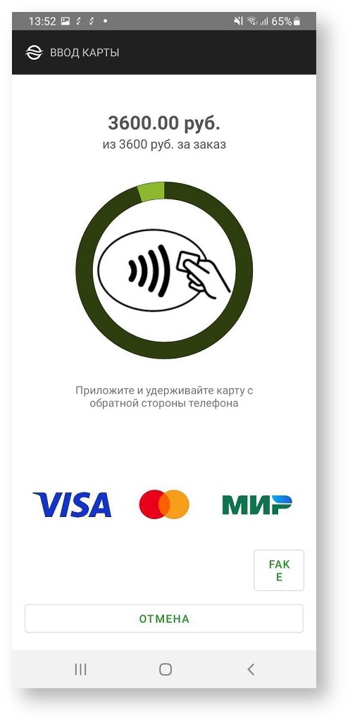 Оплата заказа в приложении Assist SoftPOS начинается с получения номера заказа от приложения Assist mPOS. При этом на экране отображаются данные заказа: