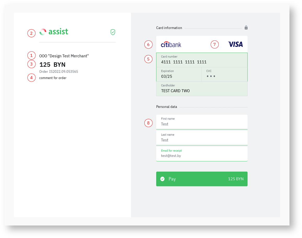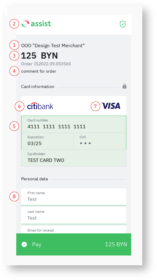 The payment pages of a standard type are displayed to the buyer for payments through IPS Assist using redirection to the Assist site or display in an iFrame built into the merchant's website.