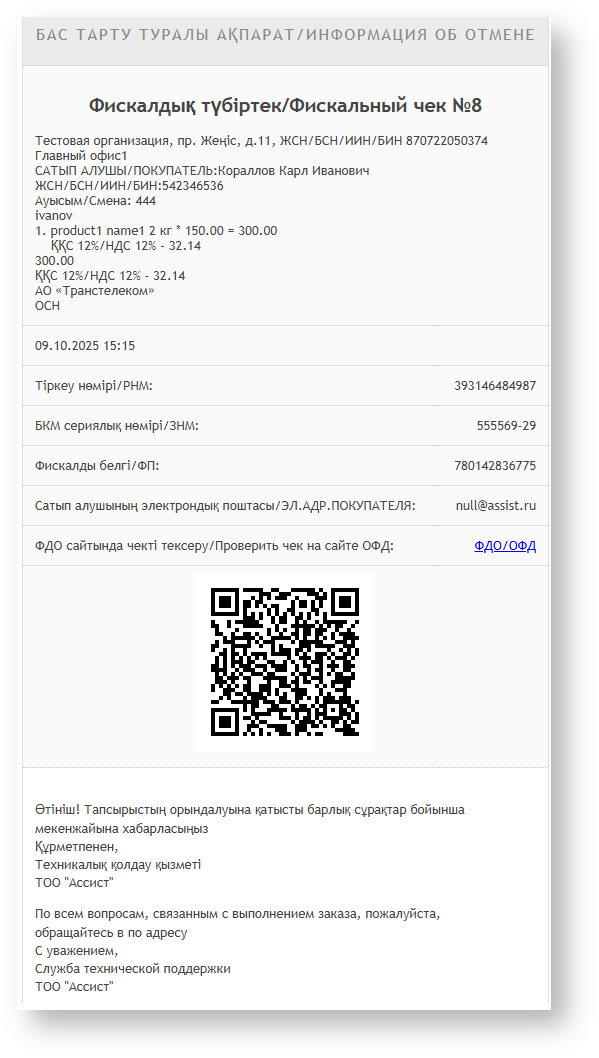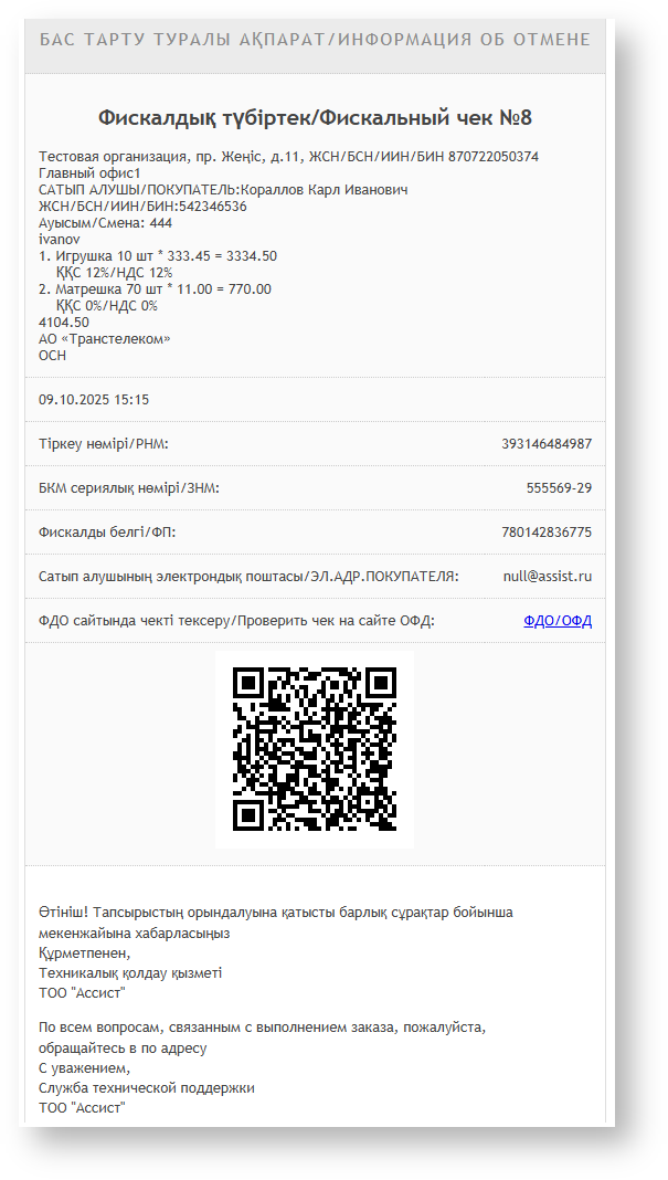 ASSIST передает в ККТ все данные, необходимые для формирования чека согласно протоколу взаимодействия с ККТ. ККТ передает данные в ОФД в соответствии с Законом Республики Казахстан.