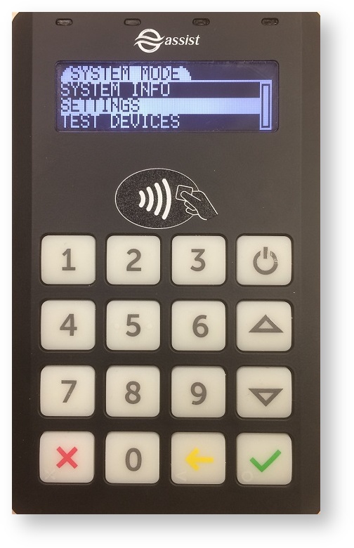 Для входа в меню устройства необходимо нажать кнопку с желтой стрелкой (вторая справа в нижнем ряду):