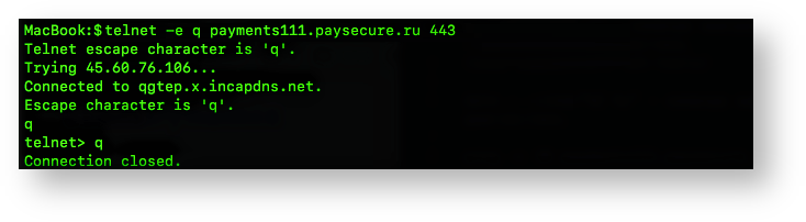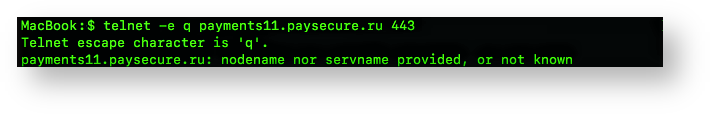 Для проверки доступности 443 порта (HTTPS) сервера payments111.paysecure.ru из сети пользователя применяется команда в терминале: