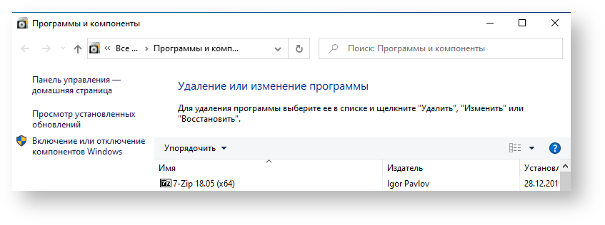 В новом окне выбрать пункт меню Включение или отключение компонентов Windows.