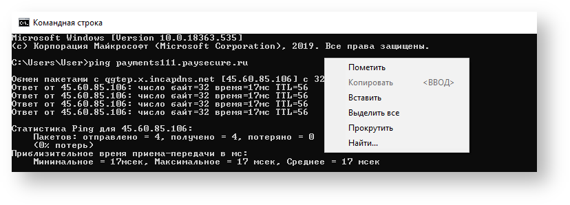 При необходимости можно сохранить результат выполнения команды, отображенный на экране, используя буфер обмена.