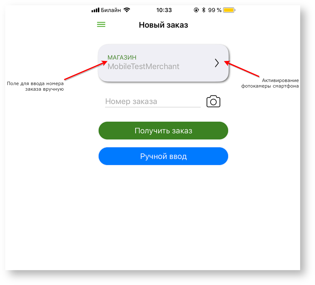 После обработки фотографии штрих-кода или QR-кода заказа в поле номера заказа отображается полученный номер.