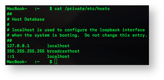 В терминале следует выполнить команду sudo nano /private/etc/hosts