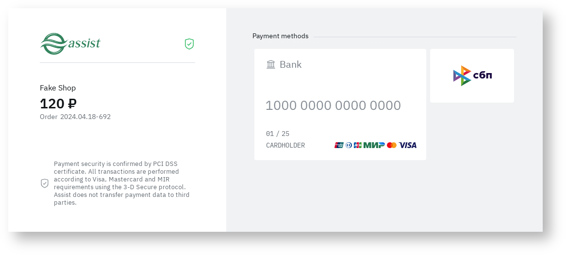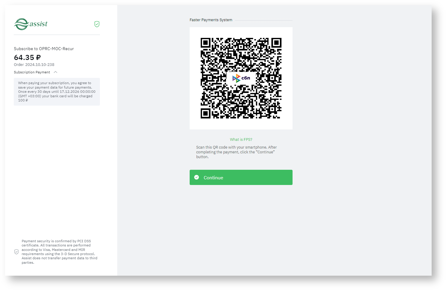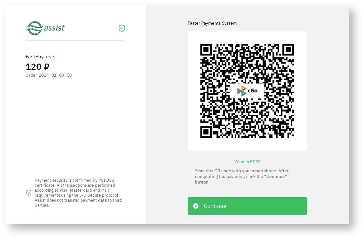 - On the Assist payment page, the customer selects the faster payment system as a payment means.