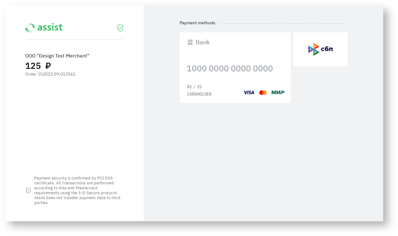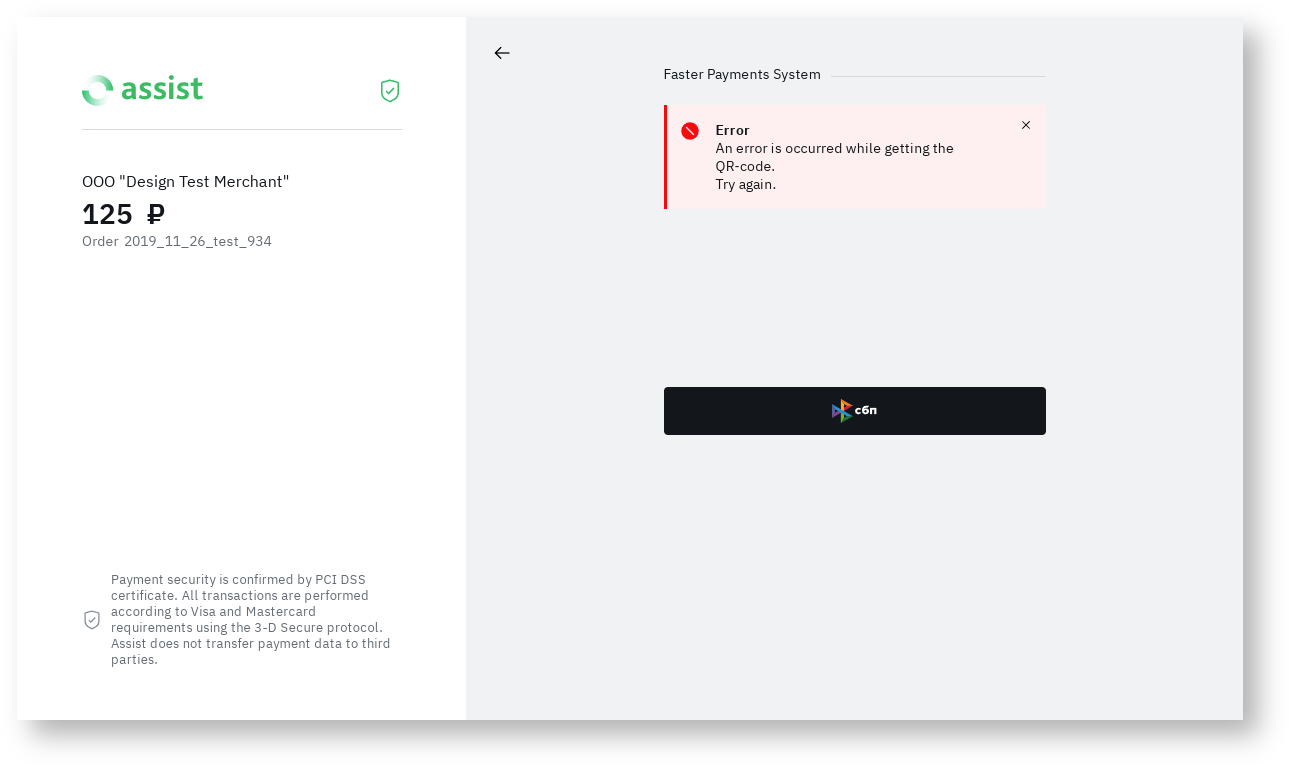 - On the Assist payment page, the customer selects the faster payment system as a payment means.
