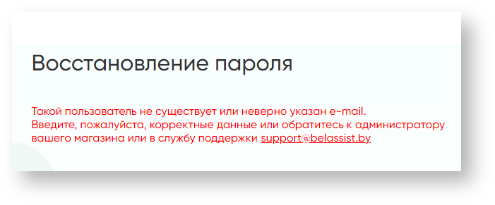 Если указанный логин не существует в системе, или ему не соответствует указанный адрес электронной почты, или у пользователя отсутствуют права на изменение собственного пароля, то на экране отобразится следующее сообщение: