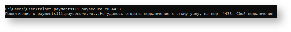 Для проверки доступности 443 порта (HTTPS) сервера payments111.paysecure.ru из сети пользователя применяется команда: